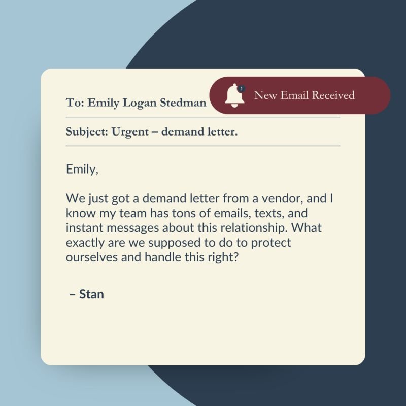 ● Understand that the moment you get a demand letter (or even anticipate a dispute), your duty to preserve evidence kicks in. That means emails, texts, Slack/Teams messages, calendar invites, attachments, files, and more.